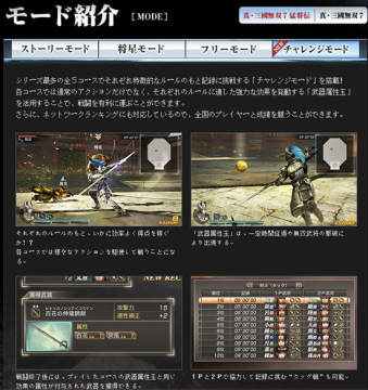 《真三国无双7猛将传》官网近日更新,追加了本作新增的挑战模式介绍。游戏中有5种挑战模式,每项将有网络排名功能,让各地的玩家能够用自己的成绩来一争高下,此外根据各类挑战不同的规则,玩家们需要选择不同的战法来更有效率的获得更高的分数,下面就来一起看看官网的介绍吧。