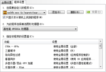 火影忍者:究极风暴3卡帧解决教程 来源: 飞翔小编 2013/10/27 9:47:48 浏览量:10189 火影忍者:究极风暴3因为是移植游戏,现在很多玩家在游戏运行时都出现了卡帧状况,如何解决其实如果玩过杀手47类游戏的玩家应该都知道如何解决,这里再重新复述一遍。因为,之前玩杀手47也是这问题,所以我也去试了一下,结果就是这问题,改下N卡设置,这游戏默认也是集成显卡的,添加程序,改成N卡就好,用N卡双显的还卡的,我去撞豆腐,刚才看到有人都说过这个问题了,找不到原帖,我就补发下