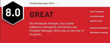 《足球经理2014》IGN详细评测 获8.0分优秀评价