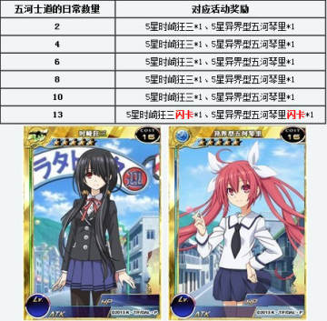 《百万亚瑟王》收集“来禅高中日常”奖励详解 来源: 飞翔小编feichenpan 2013/11/1 16:54:17 浏览量:1239 在卡牌网游《百万亚瑟王》11月将开启的“来禅高中日常”的每日秘境,通关每日秘境将可获得奖励道具“五河士道的日常”,这个道具的作用就是用来换本季限定5星动漫卡牌时崎狂三、异界型五河琴里,收集13个可以换取相应的闪卡,下面就来一起看看吧。来禅高中日常秘境通关奖励:收集五河士道的日常数量奖励: