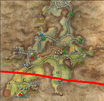 应该是飞到最近的遁地点,例想到A点就C,上面估计就靠去B了