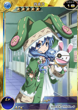 延续上期循环收集的罗宾汉好卡,本次的收集卡更是大爱有木有?四糸乃继续萌翻全场。本张四糸乃闪满破后双围也有3W以上,CP也是超过了2000,虽然不是一张奶卡,但也绝对非常值得入手。