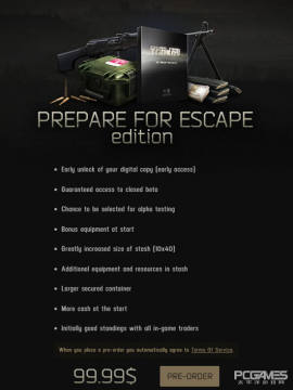 俄罗斯生存射击网游《逃离塔科夫(Escape from Tarkov)》现已在官网开放了预购。《逃离塔科夫》并非是免费制游戏,而是买断制,根据官网公布的价格来看,本作共有四个版本,售价从45美元到140美元不等。幸运的是,不论预购哪个版本,玩家都将可以获得参加2016年封闭测试的资格。