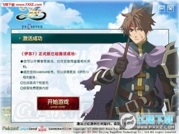激活页面出现“《伊苏7》正式版已经激活成功!”文字表示您已经完成激活,可点击“开始游戏”立即进入游戏。