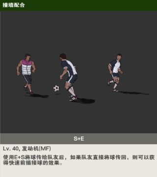 这个技能需要队友的配合,方可达到最佳效果。如果在成功二过一之后,获得一个额外的加速效果,将会非常有助于彻底甩开防守队员,从而形成短时间的多打少。