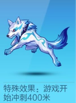 特殊效果:游戏开始冲刺400米(目前版本属性最差的宠物,冲刺那400米的得分基本可以无视,唯一的特点就是好看点)