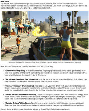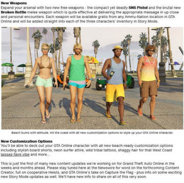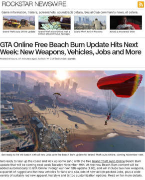 根据Rockstar官方网站的介绍,《侠盗猎车手5 Online》将于11月19日迎来1.06版本的更新升级,将会为各位玩家带来免费的海滩狂欢包DLC,下面就来看看游戏追加的全新内容,各位GTA系列玩家不要错过了。