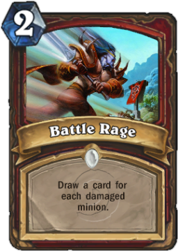 战意之怒是一张非常有趣的卡,你并不会有太多的机会去使用它。使用战意之怒允许战士视场上受伤仆从的数量抽牌,卡牌的说明文字并没有写明仆从必须处在你或对手的控制之下,这意味着当场上有多于2-3名受伤仆从的情况下,这张卡能够有效地增加你的手牌数量。它也可以和1费卡牌——旋风斩打出一个很有效的combo,旋风斩可以对所有仆从造成1点伤害,这个combo是非常棒的。
