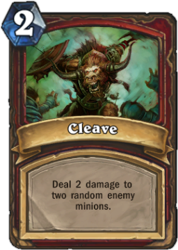 这张卡正是战士原始力量的体现,顺劈斩花费2点水晶能量,对随机2名敌方仆从造成2点伤害。这张卡牌的作用已经写得再直白不过了,使用这张卡,不消两至三回合,你就可以看见刚才还活在场上耀武扬威令你心烦的仆从就那样死去了。