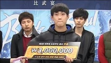 进入终极冠军争夺战的三强选手分别是:力士“결의 대장”、刺客“난역시굉해”、灵剑士“게장같은놈”。让韩服玩家大跌眼镜的是上届冠军灵剑士“게장같은놈”率先被淘汰确立为季军。随后刺客“난역시굉해”击败力士“결의 대장”成为黑马,获得比武宴的冠军,并得到300万韩元的奖励(PS:韩币300万约为人民币17500元左右)。
