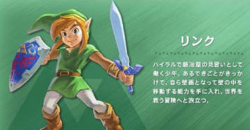 林克:在海拉尔锻造店作为见习干活的少年。以某个事件为契机,获得了能够自身变为壁画在壁中世界移动的能力,为了拯救世界展开冒险之旅。