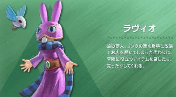 拉迪奥:旅行商人。擅自将林克的家改装成店铺开店,作为补偿会出售和借贷给林克冒险道具。