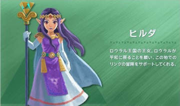 希尔达:罗乌拉斯王国的公主。愿望是罗乌拉斯恢复和平,给予在这里冒险的林克支援。