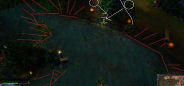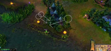 作用:拆基地后,你应该在这里放个眼。这样可以在己方小兵推进到对面基地前也能获得对面基地里的活动信息,通过这个地方的视野,你可以看见他们从哪个出口出去,从而得知他们的动向。如果你们有人在他们的野区里偷野,这个眼能帮助你的队友逃脱。