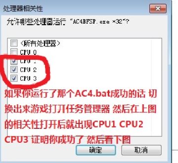 AC4.cmd 文件下载 下载后随便解压到桌面就可以 记得要修改路径 执行后记得按图说明 自己再切出来把CPU0也打勾了.