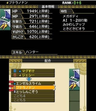 成为同伴的怪物有着“HP”、“MP”、“特性”等数值。其中关系到全体能力的便是“等级”和可以使用的“技能”了。想要强化怪物带着它们去一起冒险在战斗中获得经验是基本。