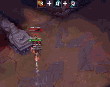 RQQ是比较低级的“输出最大化”手段,伤害与QRQ一致(二段Q有已损失生命值百分比的伤害,所以先R再二段Q会有更高的伤害)。但是因为击飞有一段硬僵直状态所以能够提升Q的命中率,这里的操作技巧是保证与目标之间没有敌方目标的情况直接朝你R的方向Q即可,除非对方利用水银+位移的连招闪开,否则Q基本都能打中。