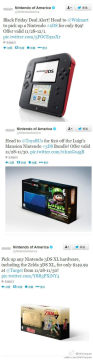 美国任天堂推出黑色星期五优惠套装 2DS仅售99美元 来源: 飞翔小编 2013/11/27 20:56:30 浏览量:413 美国任天堂官方推特今天公布了“黑色星期五”的优惠套装,一些同捆游戏的任天堂掌机和主机届时都将以超低价格发售,其中2DS掌机在11月28日至12月1日仅售99美元,而《路易鬼屋2》3DS同捆套装在11月28日至11月30日将优惠20美元,最值得玩家购买的土豪金《塞尔达传说》限定主机在这期间仅售149.99美元。