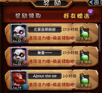 2.好友赠送和索要:游戏中玩家自己的QQ或微信好友之间,可相互赠送/索要活力(游戏好友无法使用此功能),每次赠送/收取2点活力,每天最多可赠送/收取15次。