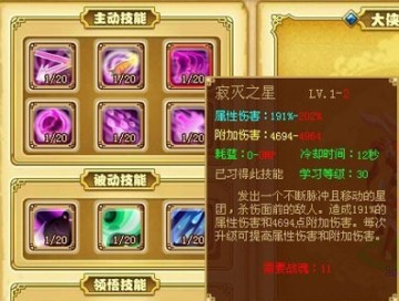 寂灭之星:发出一个不断脉冲且移动的星团按,杀伤面前的敌人。造成171%属性伤害和4694点附加伤害。每次升级可提高属性伤害和附加伤害。