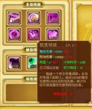 极度领域:制造一个伊尔专属领域,杀伤所有进入的敌人。造成430%属性伤害和10568点附加伤害。每次升级可提高属性伤害和附加伤害。