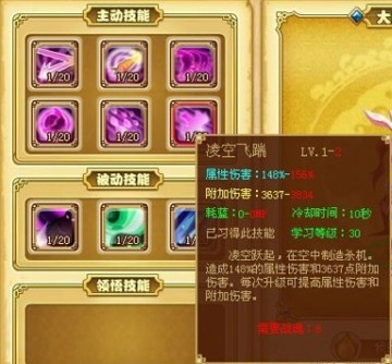 凌空飞踹:凌空跃起,在空中制造杀机。造成148%属性伤害和3637点附加伤害。每次升级可提高属性伤害和附加伤害。