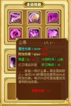 尘爆:掀起一场沙尘暴,袭击面前敌人。造成191%属性伤害和4694点附加伤害。每次升级可提高属性伤害和附加伤害。