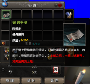 需要开启组队:队伍中所有成员都必须持有“银钩手令”