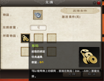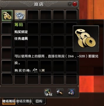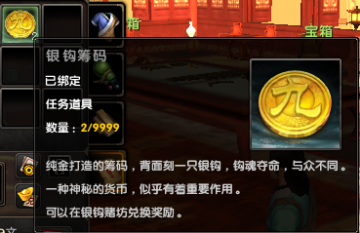 “银钩舫账房”处使用碎银兑换“筹码”,“筹码”是银钩舫参与各类玩法的主要道具。