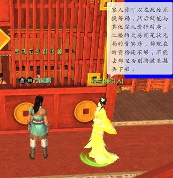 进入后:2.初次进入时,门口有个“接引人”会将玩家直接引导至“银钩舫账房”(266,-518)。