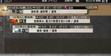 该配方并不一味增加伤害或者减少OP,一切为了实战方便,大致编排按照我上面谈到的那些原理,配方如下:L弹丸强追踪全方向(充填)---(碰撞)--->M球附着极长(衰减缓和)---(消失)--->M制御上短---(同时)--->S装饰弹丸直进极短 ---(消失)--->L装饰弹丸重力影响---(碰撞)--->LL爆发(抗重力)