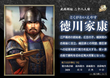 光荣今天公布的《信长之野望14创造》新武将为日本历史上赫赫有名的江户幕府第一代征夷大将军“德川家康”,他和丰臣秀吉,织田信长并称日本战国三英杰。他是名杰出的政治家和军事家,其能力合计值为369,总排名第五。