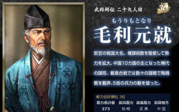《信长之野望14》是一部讲述日本战乱时期的游戏,丰臣秀吉,德川家康等众多将领都将完美展现在你面前。下面给大家介绍一个在日本历史上的重要人物毛利元就。
