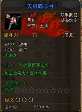任务要求击杀魔化六耳,奖励为一把六60级火武器,属性如图。