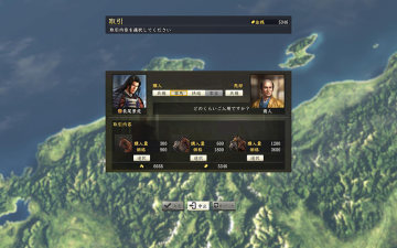 玩家可以和商人交易粮草、马匹武器和宝物等物资。
