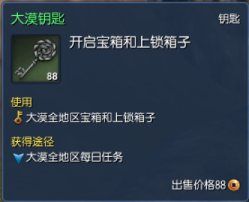 水月平原的日常奖励可不少,想要开启更多的日常,就要尽量把主线任务做到底噢,平时打怪的时候都锁定经验吧,一直做主线,有顺路的支线和日常也可以做,但是不交任务。等到主线要求的等级你没达到的时候,再回头去做支线任务,活力用完之后,再做日常任务。有些支线任务也能开启日常,但是收益不如主线开启的日常。到了水月平原之后可以一直做主线任务到第16章,这时候要求等级为41级。这样每天活力清完加上日常最少也有2金吧。你以为这样就结束了?那你就太天真了!回大漠去吧,把所有奖励大漠钥匙的日常全做了!如果你相信,非常相信你RP的话,可以全部做了!开到去孔符的话你就发了!做大漠日常的目的是为了大漠钥匙,炎煌武器箱子需要3把钥匙,大漠钥匙到了后面会比水月钥匙更贵!
