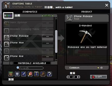 这个是按C或者右上的功能键徒手搓出来的物品。大部分物品需要通过各种机器制造。比如我们马上要做的工具桌。一堆木材就能做成。