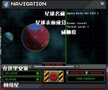 做到船长席上之后就可以指定飞行计划了。左下角的作用就是给某个星球做记号。回母星的选项一样费燃料。go上面显示了你的燃料情况。右侧是坐标以及随机选择其他星系。注意哦~宇宙不是随机生成的,而是固定不变的。别的玩家玩到的星球你可以通过获得其坐标去寻找哦~