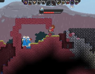 不过在野外一定要小心。这里建议玩的时候开着声音,一来音乐音效都很赞,更重要的是能预警。怪兽的低吼声能让你发觉屏幕看不到的敌人,突然转变的背景音乐告诉你你已经被怪物盯上了。有些怪物靠碰撞伤害你,有些会放投掷技能。对付怪物暂时就拿着武器一顿猛撸就好了。初始武器4下一个怪,带不错的击退效果。