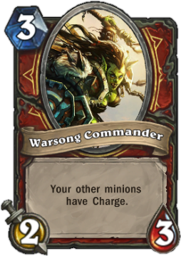 当你使用不是战士专属的卡牌填充剩余位置时,你需要试图分析并找出你所需要的卡牌。如果你打算围绕激怒机制构筑卡组,有许多低费的好卡可以选择,考虑阿曼尼狂战士、狂怒的狼人(激怒:获得风怒技能;攻击力+1)以及牛头人战士(嘲讽;激怒:攻击力+3)。如果你更喜欢冲锋机制,那就试图加入战歌指挥官、库卡隆精英以及其他性价比较高的仆从,这可以让你持续保持对对手的压迫力,但你需要考虑到不能使场上的仆从都保持冲锋技能的情况并留有后手。