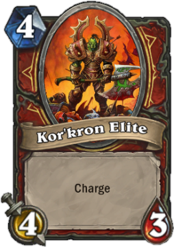 当这群士兵不像平日那样在奥格瑞玛欺负可怜的加摩尔时,库卡隆精英会很乐意加入加尔鲁什的强力卡组中。这张卡除了冲锋效果外没有其他特点的机制,但作为1张4费的卡牌,库卡隆精英拥有者非常优秀的4/3属性。他不会那么简单就被打倒,更重要的事,如果你在第四回合之前就抽到这张牌,他会给予对手非常大的压力。如果你使用的是一副极端激进的卡组,这张卡是必备之选。