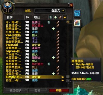 选择好自己需要组人或者求组的活动,点击“刷新”,依次邀请你所需要的团员(同时在列表中你的名字会自动变为队长标识),或者向当前正在开团的团长(“队长标识”)私密进组,可以点击名字看到备注