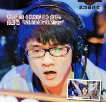 禹景曦,ID:Misaya,昵称“若风”,TeamWE电子竞技俱乐部GIGABYTE.LOL队长,建队元老,在队中担任AP,中国LOL首个世界冠军——IPL5冠军成员,并在2012年一年内率队连获十冠,S3赛季末国服RANK第一。