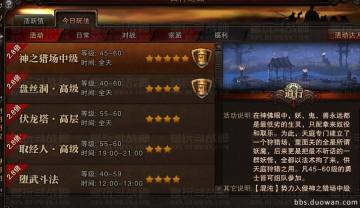 目前只有神之猎场和盘丝活动可以直接一键完成。点击上图活动右边偶人会弹出下面提示。