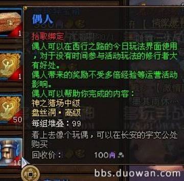 斗战神新增“偶人”功能,在西行之路的今日玩法界面使用,轻轻松松点掉部分日常活动(道具可在长安珍宝阁处购买)。