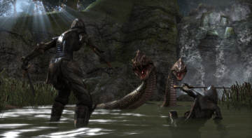 Bethesda公司最近曝光了其网游大作《上古卷轴OL》的新截图,其主要展示了游戏中的实机战斗画面,我们可以看见各种敌人怪物,例如火焰魔像,骸骨巨像,远古巨蟒等。