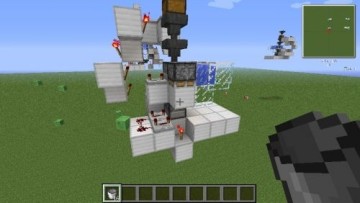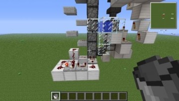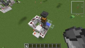 水桶到投掷器里用比较器检测,信号输出到时钟脉冲发射器,使水桶上传