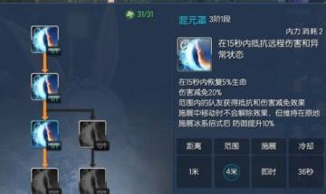 混元罩3阶一段,在释放期间可以躲避任何远程攻击,没错你没看错,是任何远程攻击,红莲的第一个BOSS和最终BOSS都需要用到这个技能,如果不是打红莲可以不点,那么有的同学就会问了,为什么不点3阶2段,那个可以跟着你一起移动的罩子啊? 你再仔细看看那个移动罩子的CD,比固定罩子长了10秒,打炎煌的话根本来不及恢复。