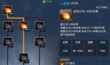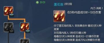 莲花指点出2阶2段,点出2段是因为这个技能可以更焦土配合打出很高的输出,2阶1段其实也是不错的选择,点数不多的同学可以不点这个技能。