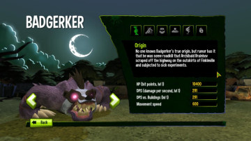 来历:没有人知道嗜血獾的来历,据说是Archibald Brainhov从Finkleville身上获取的表皮作为的实验体(嗜血獾)。